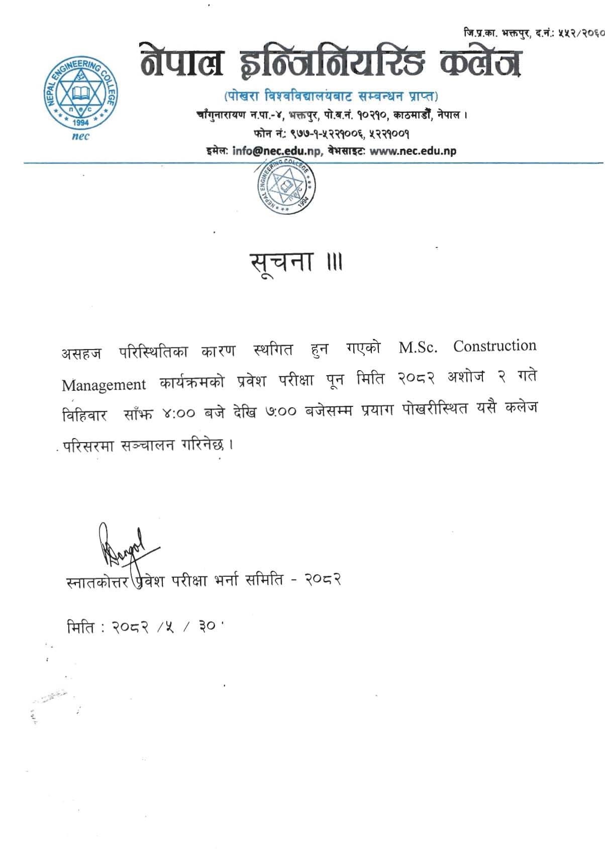 | Notice of M.Sc. Construction Management Entrance Exam Date, Time, and Venue | 2025-09-15 | |