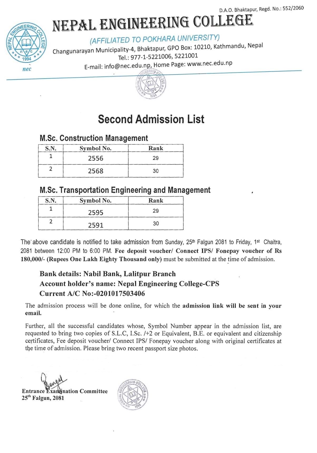 बसरुट सम्बन्धि सूचना । नयाँ वर्ष २०८३ को शुभकामना तथा कलेज बिदा सम्बन्धि सूचना । भावपूर्ण श्रद्धाञ्जलि । 2nd M.Sc. Admission List March 2026 Result of M.Sc. Entrance 2026 March बसरुट सम्बन्धि सूचना । Semester End Vacation (Fall 2025 Semester) भावपूर्ण श्रद्धाञ्जलि । चैतेदशैमा कलेज बिदा सम्बन्धि सूचना । nec Prospectus 2026 छपाई सम्बन्धि शिलबन्दी कोटेशन आह्वानको सूचना । नेपाल इन्जिनियरिङ कलेजको भाडामा बस संचालन सम्बन्धी सिलबन्दी बोलपत्र आह्वान. ने.ई.क क्याफे संचालन सम्बन्धि शिलबन्दी कोटेशन आह्वानको सूचना । बसरुट सम्बन्धि सूचना । फागु पुर्णिमा (होली), प्रतिनिधि सभा निर्वाचन तथा नारी दिवस मा कलेज बिदा सम्बन्धि सूचना । Notice of Bus Route. Elective Final Exam Notice (Fall 2025) Extension Notice for Examination form Submission Date (Fall 2025) Bus Route सम्बन्धि सूचना । महाशिवरात्रीमा कलेज बिदा सम्बन्धि सूचना । महाशिवरात्रीमा कलेज बिदा सम्बन्धि सूचना । कार्यालय समय परिर्वतन सम्बन्धि सूचना । Notice for Exam Form Fall 2025 ने.ई.क क्याफे संचालन सम्बन्धि शिलबन्दी कोटेशन आह्वानको सूचना । Exam Form Notice Fall Semester 2025 Notice Assessment Fall 2025 Farewell कार्यक्रम सम्बन्धि सूचना । खेलकुद उत्सव २०८२ मा कुपन तथा रकम वितरण सम्बन्धि सूचना । Notice After Dabi Birodh Farewell Program 2082 (Subject Gold Award 2025) भावपूर्ण श्रद्धाञ्जली मकर सङ्क्रान्ती (माघी पर्व) मा कलेज बिदा सम्बन्धि सूचना । सूचना । उम्मेदवार छनौट तथा दाबीबिरोध सम्बन्धी सूचना । दाबी बिराेध सम्बन्धी सूचना (Semester Topper Scholarship) खेलकुद उत्सव २०२५ सम्बन्धि छलफलमा उपस्थिती हुने सूचना । Call for Interview. भावपूर्ण श्रद्धाञ्जली Quotation for Smart Board Quotation for Projector खेलकुद उत्सव २०८२ सम्बन्धमा छलफल सम्बन्धि सूचना । खेलकुद सप्ताह २०८२ सम्बन्धि सूचना । Notice Chance Exam Final Year Spring Semester 2025 Smart Board Quotation Notice Projector Multimedia Quotation Notice Notice for Rechecking/Retotaling Spring 2025 Notice UT Fall 2025 Academic Callender Fall Semester 2025 College Fee Notice Fall 2025 [NEPAL ENGINEERING COLLEGE STUDENT COUNCIL, (NESCo)] सम्बन्धि बिधान सुधार तथा संभावित निर्वाचन मिति तयको लागि सम्पर्क गर्ने सम्बन्धि सूचना । NEPAL ENGINEERING COLLEGE STUDENT COUNCIL (NESCo) पुनर्गठन सम्बन्धि छलफलमा उपस्थित हुने सम्बन्धि सूचना । PU Registration Notice for 2025 Batch कलेज समय परिर्वतन सम्बन्धि सूचना । शिक्षक उम्मेदवार छनौट सम्बन्धी सूचना । बस पास सम्वन्धी सूचना । कक्षा सञ्चालन सम्बन्धी सूचना ०८२.०७.१७ । Call for Interview Bus Route सम्बन्धि सूचना । 2025 Batch मा भर्ना भएका बिद्यार्थीहरू को Orientation Program सम्बन्धि सूचना । Notice Retotaling/Rechecking Spring 2025 (Final Year) nec Provincial Scholarship- Awarded List 2025 Result of nec Provincial Scholarship Exam 2025 (Sep. 21, 025) Result of nec Community Scheme Entrance Exam-2025 (Sep. 21, 025) Notice for First Admission List (M.S. Construction Management) nec-Vacancy_2025 Notice of M.Sc. Construction Management Entrance Exam Date, Time, and Venue प्रादेशिक छात्रवृत्ति तथा Community Scheme को लागि प्रवेश परीक्षासम्बन्धी ०८२.०५.२९ विज्ञप्ति ०८२.०५.२९ Notice for M.Sc. CM Entrance Exam शैक्षिकसत्र (Fall 2025 Semester) संचालन सम्वन्धि सूचना । nec-BDH Entrance Result and Admission Notice बसरुट सम्बन्धि सूचना । प्रादेशिक छात्रवृत्ति र Community Scheme को लागि प्रवेश परीक्षासम्बन्धी सूचना Admission Office Hours on Saturday प्रवेश परी